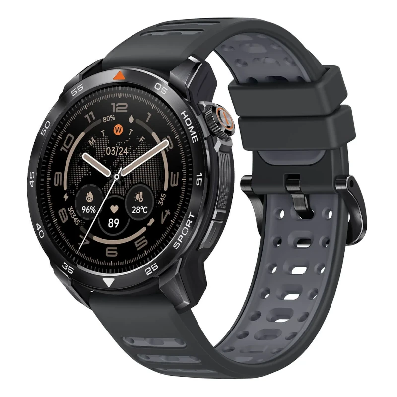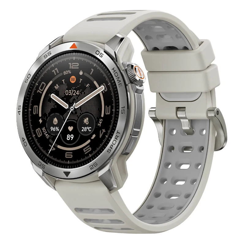 • Pantalla AMOLED de 1.43” con resolución 466 × 466 px, brillo de 1200 nits y fluidez de 60 fps.